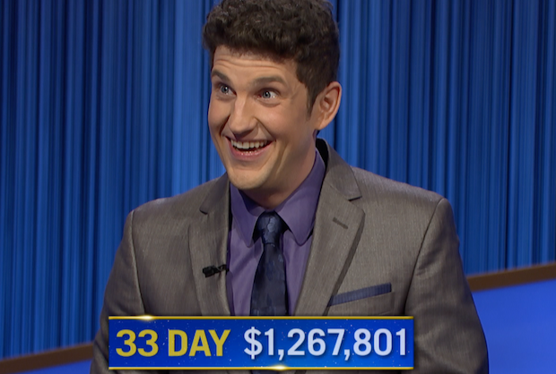 Here’s how it goes down. There are games when Matt simply messes with his well-meaning, but ultimately inferior opponents. Oh, he may actually go into the red during the Jeopardy round, fall behind for a bit and seem as if he’s just another curly haired nerdy guy with a buzzer hair trigger.